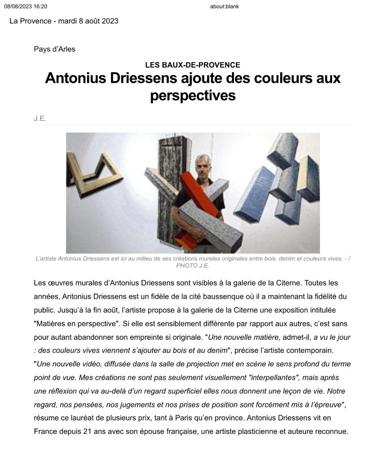 Sollicités par une journaliste en 2013 nous enverrons à sa demande des photos des œuvres. La médiatisation et les retombées que nous attendions ne se sont pas produites. Le rédacteur en chef de l'émission a diffusé nos photos sans prononcer une seule fois le nom de l'artiste ni nommé le site internet ! Notre réclamation a été entendue puisque le rédacteur a indiqué la source des photos sur le site internet de l'émission mais l'émission était tournée et d'autres dates programmées sans que rien n'ait pu être fait pour réparer cette erreur grotesque. Nous avons appris par la journaliste que l'émission n'existait plus aujourd'hui.